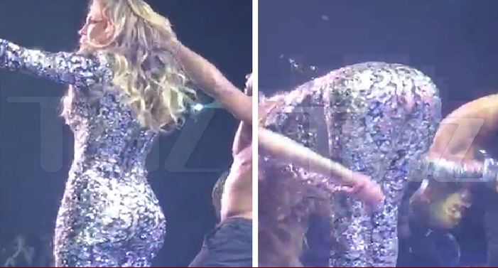 En effet pendant sa prestation, au moment de se pencher en avant pour saluer la foule, son pantalon n’a pas tenu le coup et s’est légèrement fissuré au niveau des fesses laissant entrevoir une partie de son derrière comme en témoignent les images du site américain TMZ.