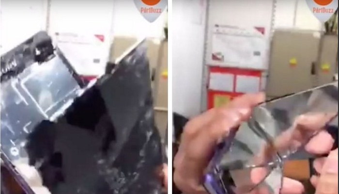 Pour ne pas avoir de problèmes avec ce dernier lorsqu’il viendra récupérer son téléphone, l’un des vendeurs explique à son collègue « Tu lui dis, c’est le transporteur qui l’a ramené comme ça et c’est tout, on l’a retrouvé dans cet état… »