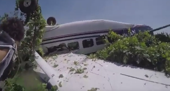 Alors qu’il était en train de filmer ses coéquipiers à bord d’un Cessna monomoteur 208, ce dernier a rencontré un incident technique obligeant le pilote a faire un atterrissage d’urgence sur un terrain.