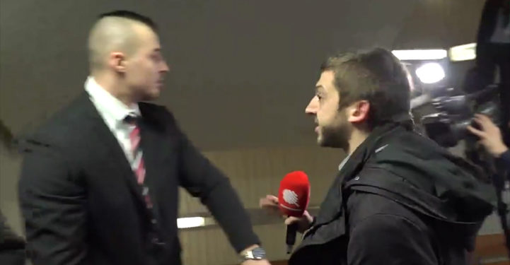 Le ton est très vite monté entre les journalistes et les deux agents qui expliquent avoir été accrédités pour l’évènement et qui n’ont donc pas à être sortir de cette façon. « Vous connaissez la liberté de la presse, messieurs ? J’ai posé une question, je suis accrédité » explique Paul aux deux vigiles avant que la situation ne s’envenime à nouveau et que le caméraman soit à son tour pris à parti par les agents.