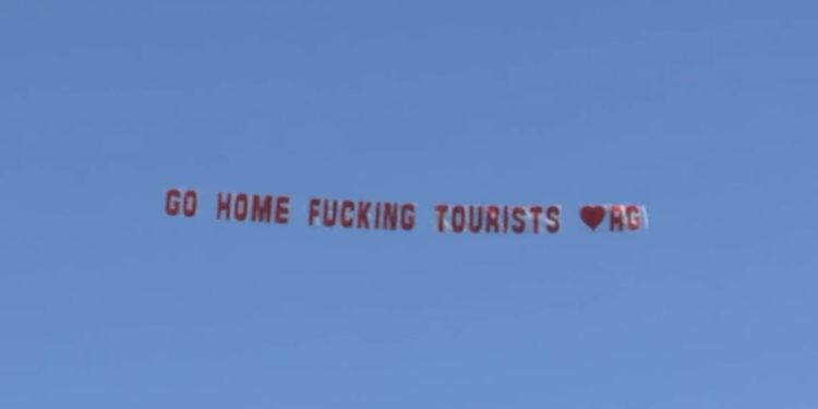Et certains touristes n’ont pas appréciés la blague de Rémi G. qui a accompagné l’ensemble de ses banderoles avec les initiales de son prénom et de son nom à savoir R.G. Comme ce couple d’espagnol filmé sur la plage au moment où l’avion passe avec le message. « Il est fou » s’exclame l’un d’eux.