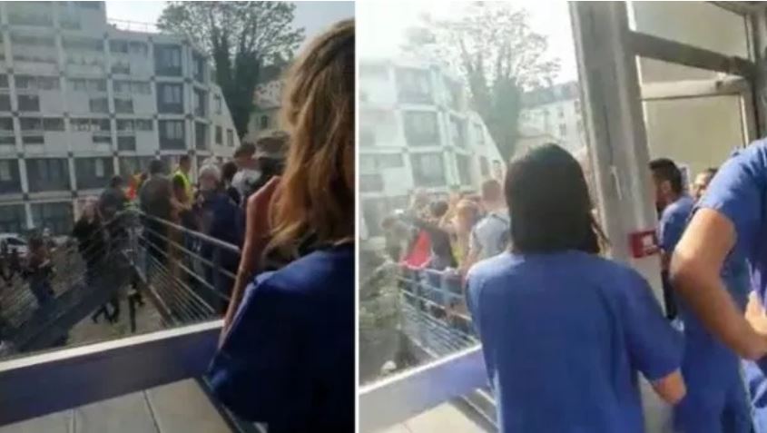 Tout débute par un mouvement de foule aux abords de l’établissement hospitalier. Les membres du personnel qui étaient en pause, se précipitent à l’intérieur du service avant que d’autres personnes extérieurs à l’hôpital ne tentent de rentrer. Une trentaine de personnes dont certaines sont porteuses d’un gilet jaune, sont rassemblés juste devant le service et plusieurs d’entre elles essaient d’ouvrir de force la porte d’entrée du service de réanimation, tenue de force par les membres du personnel hospitalier. « Il y a des malades. Vous êtes sérieux ? C’est la réanimation ici, on ne peut pas ! » s’écrit l’un d’eux.