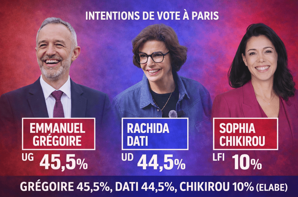 Le suspense est total dans la course à l’Hôtel de Ville. Selon un sondage Elabe pour BFMTV publié ce vendredi, Emmanuel Grégoire est crédité de 45,5 % des intentions de vote au second tour, contre 44,5 % pour Rachida Dati. Un écart d’à peine un point qui confirme l’extrême incertitude du scrutin à venir.