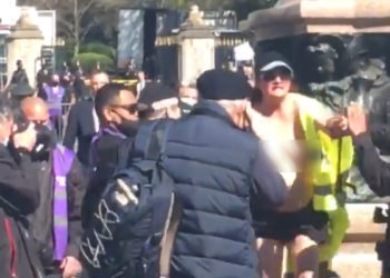 Une manifestante seins nus aux funérailles du Prince Philippe